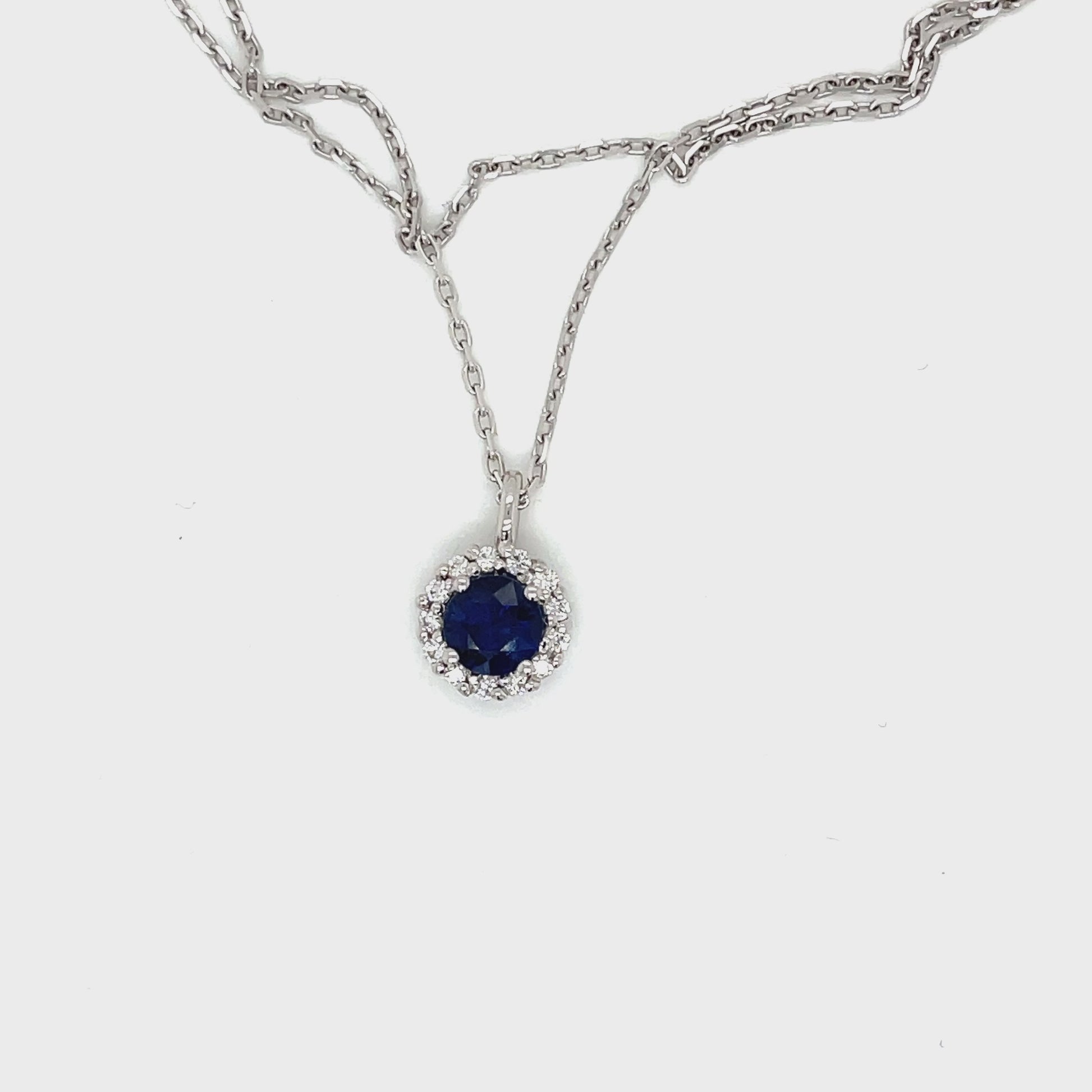 14 kt. White Gold Blue Sapphire and Diamond Halo Floating Pendant