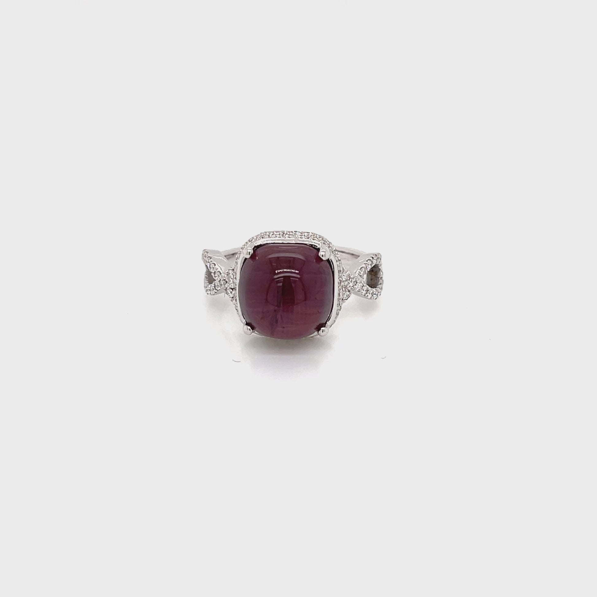 18 Karat White Gold Rubellite Pave Diamond Ring
