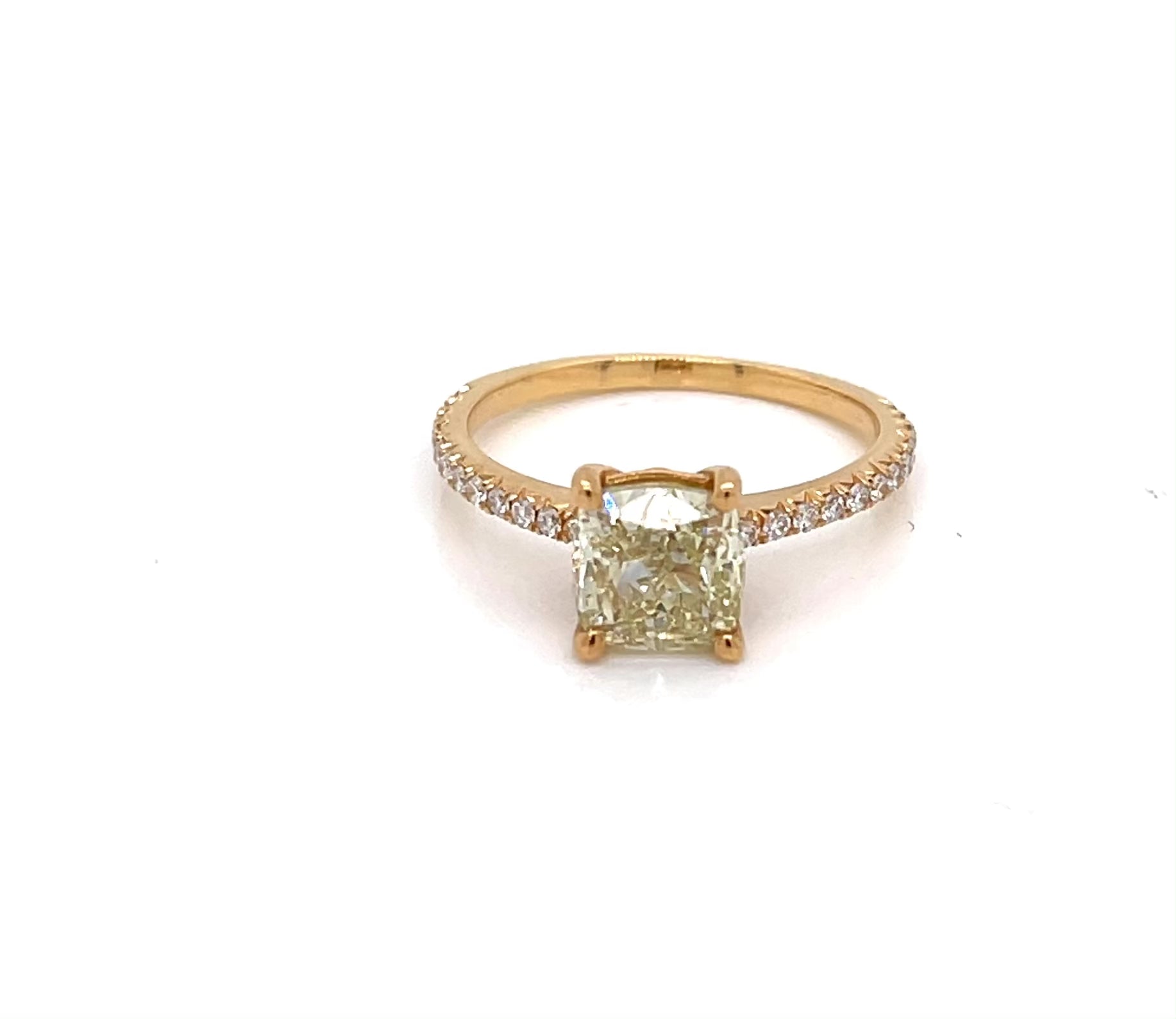 18kt. YG Engagement Ring with Natural Fancy Yellow Cushion Diamond