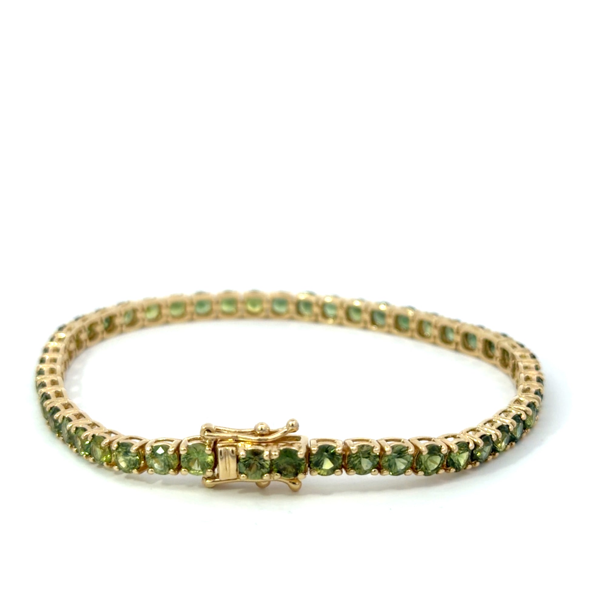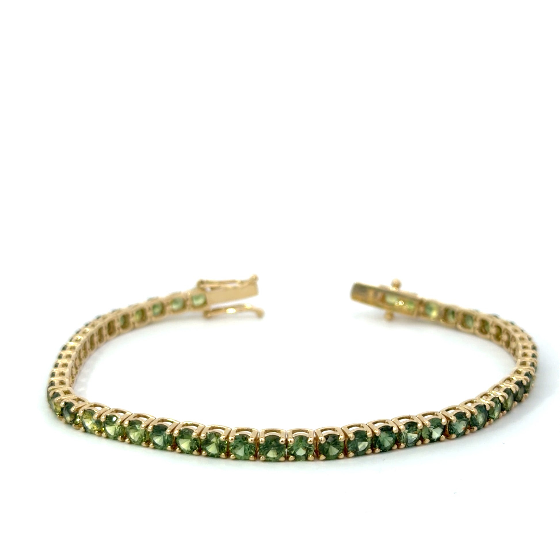 Natural Green Sapphire Tennis Bracelet in 14kt. Yellow Gold