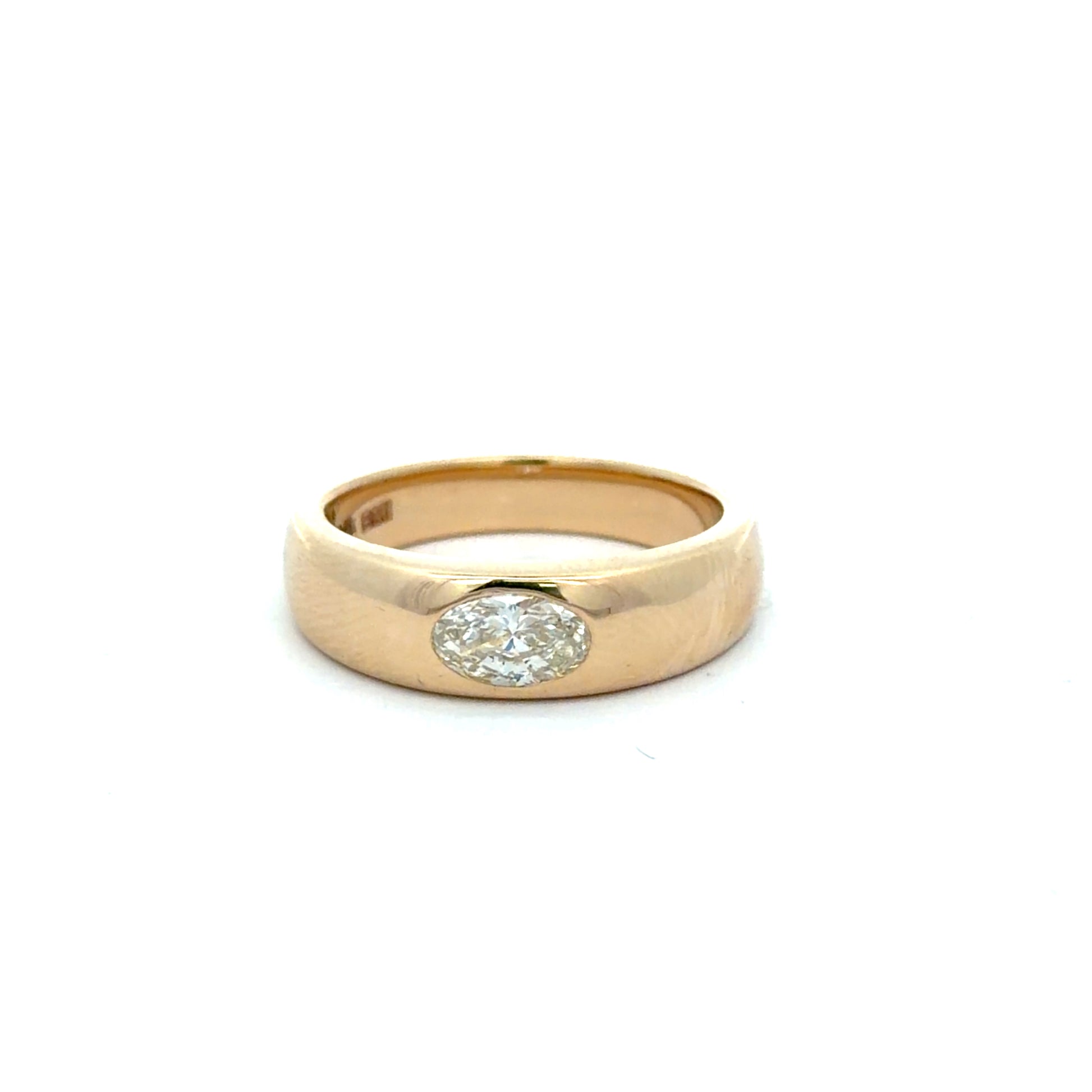 This Classic Oval Brilliant signet ring has a .51 carat stone that is graded J in color and SI2 in clarity. It tapers at the front from 5.65mm to 3.65mm in the back