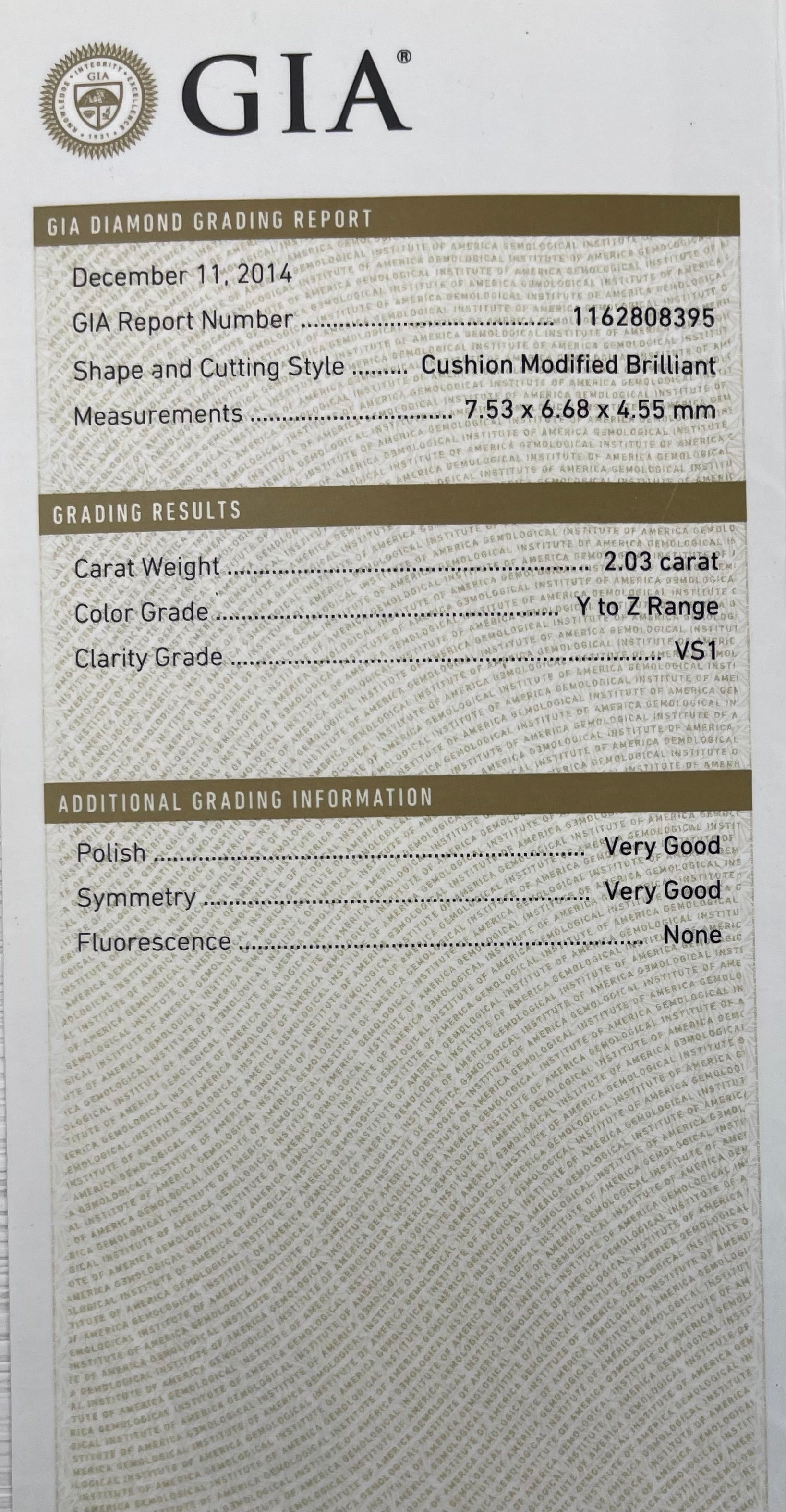 18kt. Two-Tone Gold with GIA Certified Natural Mined 2.03 carat center stone and another 1 carat of natural white Vs round Diamonds.